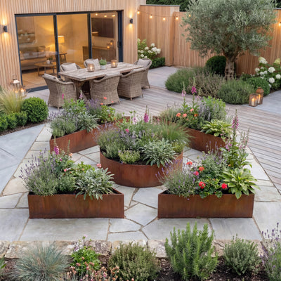 Våra stödmurar i 3 mm bockat cortenstål kombinerar styrka och design. De böjda kanterna ger en elegant finish och en stark konstruktion.