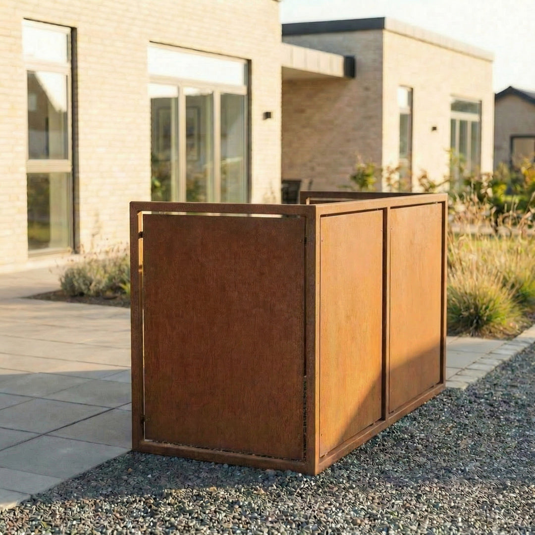 Dölj ditt avfall med ett dubbelt soptunneskydd i hållbart cortenstål